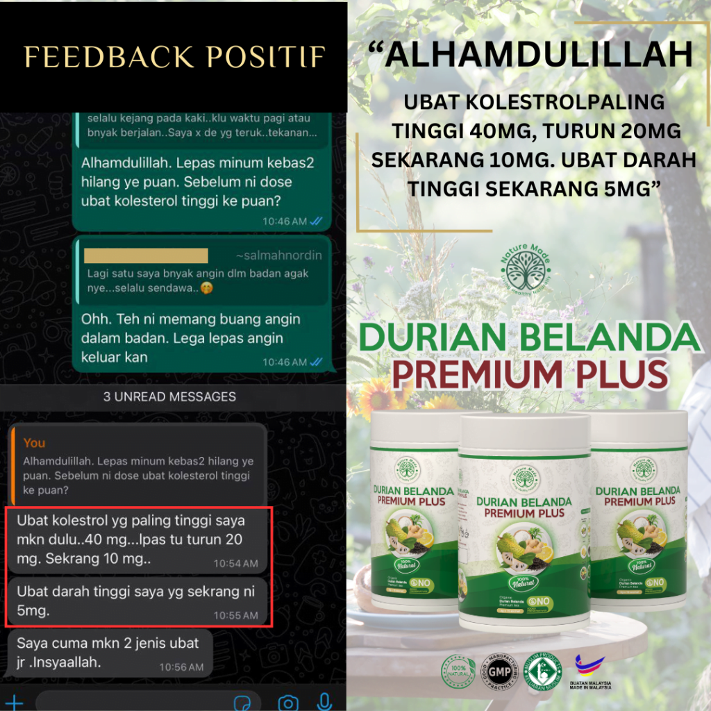 Durian Belanda Premium Plus ialah teh herba khas yang diformulasi dengan gabungan 100% bahan semula jadi untuk menyokong kesihatan sel, imuniti, dan tenaga harian. Badan lebih ringan, bertenaga, dan kesihatan yang lebih baik dengan setiap cawan.