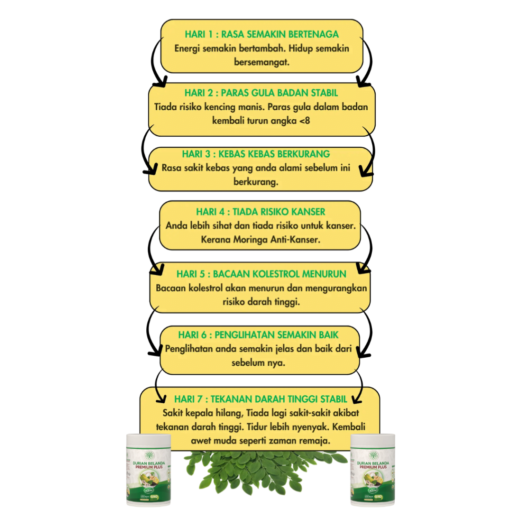Ini apa yang pengguna bakal rasakan sepanjang mengamalkan Durian Belanda Premium Plus selama 7 hari
