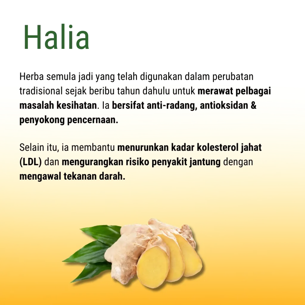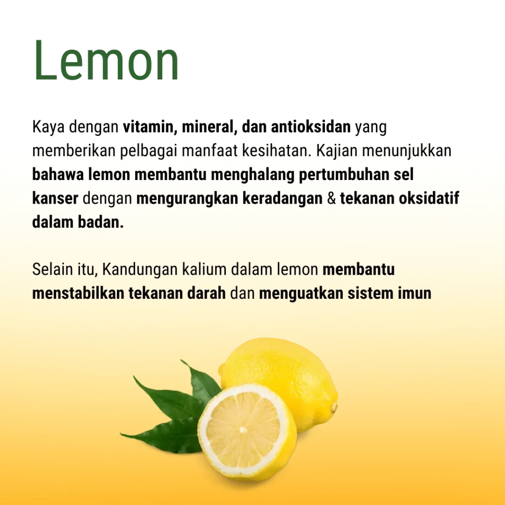 *Penafian: Maklumat mengenai bahan dan khasiat yang dinyatakan adalah berdasarkan sumber umum dan penggunaan tradisional. Ia tidak bertujuan untuk menggantikan nasihat perubatan profesional. Produk ini bukan ubat dan tidak bertujuan untuk mendiagnos, merawat, menyembuhkan atau mencegah sebarang penyakit.*